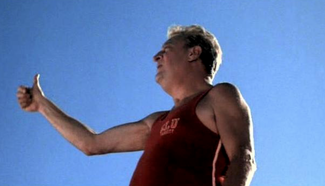 Airplane/Naked Gun — Airplane and The Naked Gun hold up well to this day, incorporating some of the greatest comedy slapstick ever. It was pure genius of the Zucker brothers and Jim Abrahams (who got their start with 1977’s The Kentucky Fried Movie) to realize they could cast dramatic actors Leslie Nielsen, Lloyd Bridges, Robert Stack, and others and just have them play it straight with those scripts. There is a scene in Naked Gun where Frank Drebin (Nielsen) breaks into a suspect’s office with a credit card on a keychain filled with American Express cards. He opens a desk drawer and quietly exclaims, “Bingo.” He’s found a bingo card. Stealthily avoiding surveillance cameras, he accidentally activates a manic player piano. Next, he snatches a piece of stationery from beneath a house of cards without tipping it over. Squinting to read the words on the page, he flicks on his Zippo for a better look. Of course, this sets paper, curtains and soon the entire room ablaze. A series of antique ceramics begin to topple from a high shelf and Drebin must catch each one as it falls. With the fire now raging, he moves outside the 30th-story room onto a window ledge where he loses his balance but regains it by grabbing first the breasts on a building-exterior statue, then by latching on to a buxom woman in an open window, and finally, by grasping the concrete penis of another of the statues. In the sequence’s final gag, the now-delirious Frank stumbles from the windowsill inward to the chesty woman’s apartment. He fumbles and falls toward her, giant sculpted penis in hand, as she shrieks. The whole thing takes less than 90 seconds. [Don’t miss also: the same production team’s irreverent Police Squad! and the not-bad Val Kilmer spy comedy, Top Secret!]